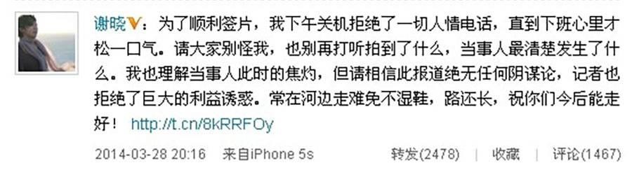 ▲ 南都娱乐周刊主编谢霄当晚微博