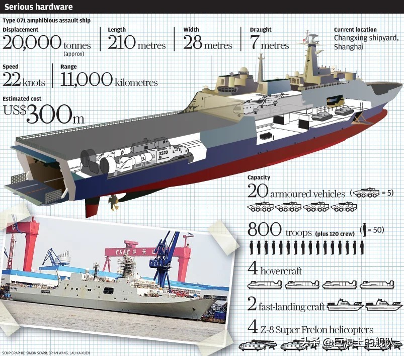 每艘071造价 超过10亿人民币,其设计建造完全依照军规标准。