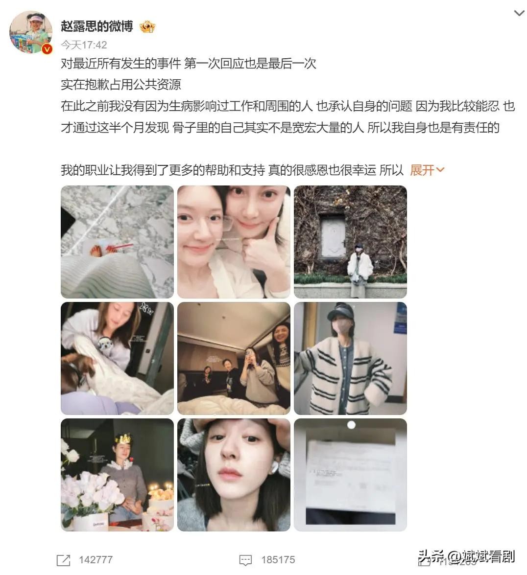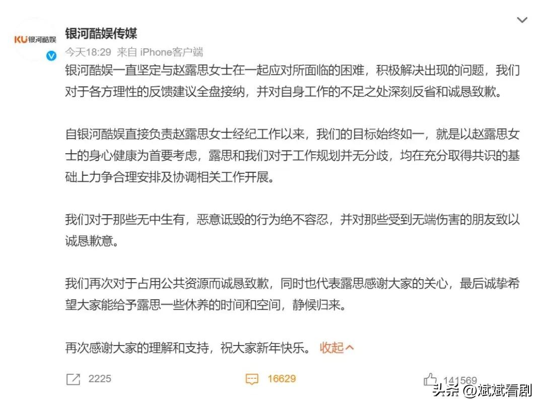 而且赵露思为什么要把事情闹得这么大?一般明星生病,往往都会尽量隐瞒,害怕因此影响形象和工作,但赵露思偏偏选择了公开发声,不仅让朋友出来为她背书,自己也通过社交平台发布了康复的照片,这样高调地曝光自己的一切,让人感觉她并不满足于仅仅是恢复健康,而是希望通过这种方式,彻底摊牌与经纪公司的关系。从她对经纪公司的指控来看,显然两者的裂痕已经无法弥合。