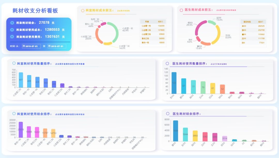 院领导和科室人员可便捷查看各科室的运营效率指标,动态掌握重点数据。系统支持同环比分析,帮助及时监控科室业务整改效果;可进一步下钻至具体医生的医疗服务效率和质量,通过多维分析全面掌握科室运营指标的构成,为管理决策提供精准依据。