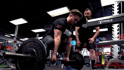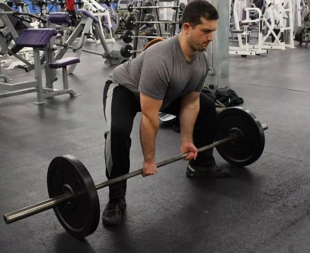 双手的握距也应该是握住杠铃手臂刚好垂直于杠铃,那这个握距就是合适的,或许有一些人为了拉起杠铃站起后更好的收缩,会适当的宽握一些,这样的话可以让杠铃更好的贴近身体。