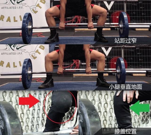 站距过窄的话,你的身体前倾幅度就会加大,同时膝盖在双脚前方,不利于伸膝的执行,同样你做动作发力都会受到影响。