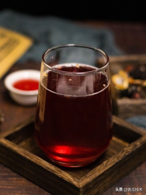 乌梅30克、山楂30克、陈皮9克、桑葚9克、洛神花(玫瑰茄)5克、生甘草3克。食材浸泡半小时日,大火烧开转小火煮半小时,融入适量冰糖,过滤出汤汁,撒入桂花。
