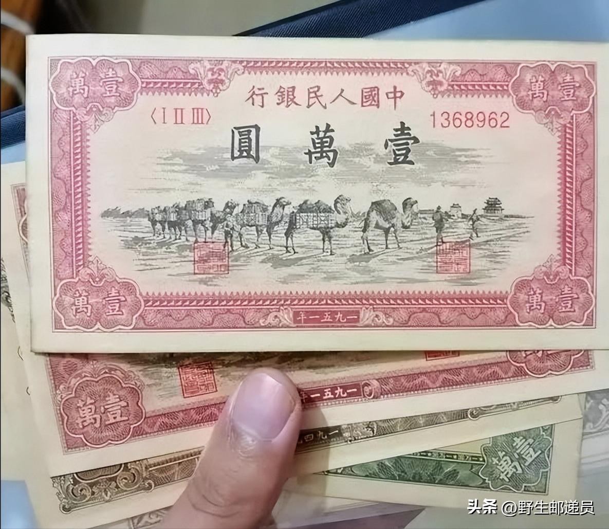 壹万元骆驼队也属于我们发行的第一套人民币,和“币王”牧马图属于一个时期的同等面值币种。其中瞻德城纸币1951年10月1日发行,于1955年5月10日停止流通。这套纸币也是所有人民币中唯一使用挪威生产的道临纸的钞票,排名“绝品四珍”之尾。最新的拍卖记录是在spink拍卖会上拍出46.8万元。