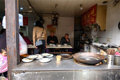 不得不说,这条老街上卖东西的商铺真的太多了,且品类很多,似乎卖啥的都有,当然还有一些老行当,像铁匠铺、锡器制作等。不过,对我来说,逛老街必不可少的就是这里的美食小吃,这里的小吃店有好几家,看似简陋味道却非常的鲜美地道。