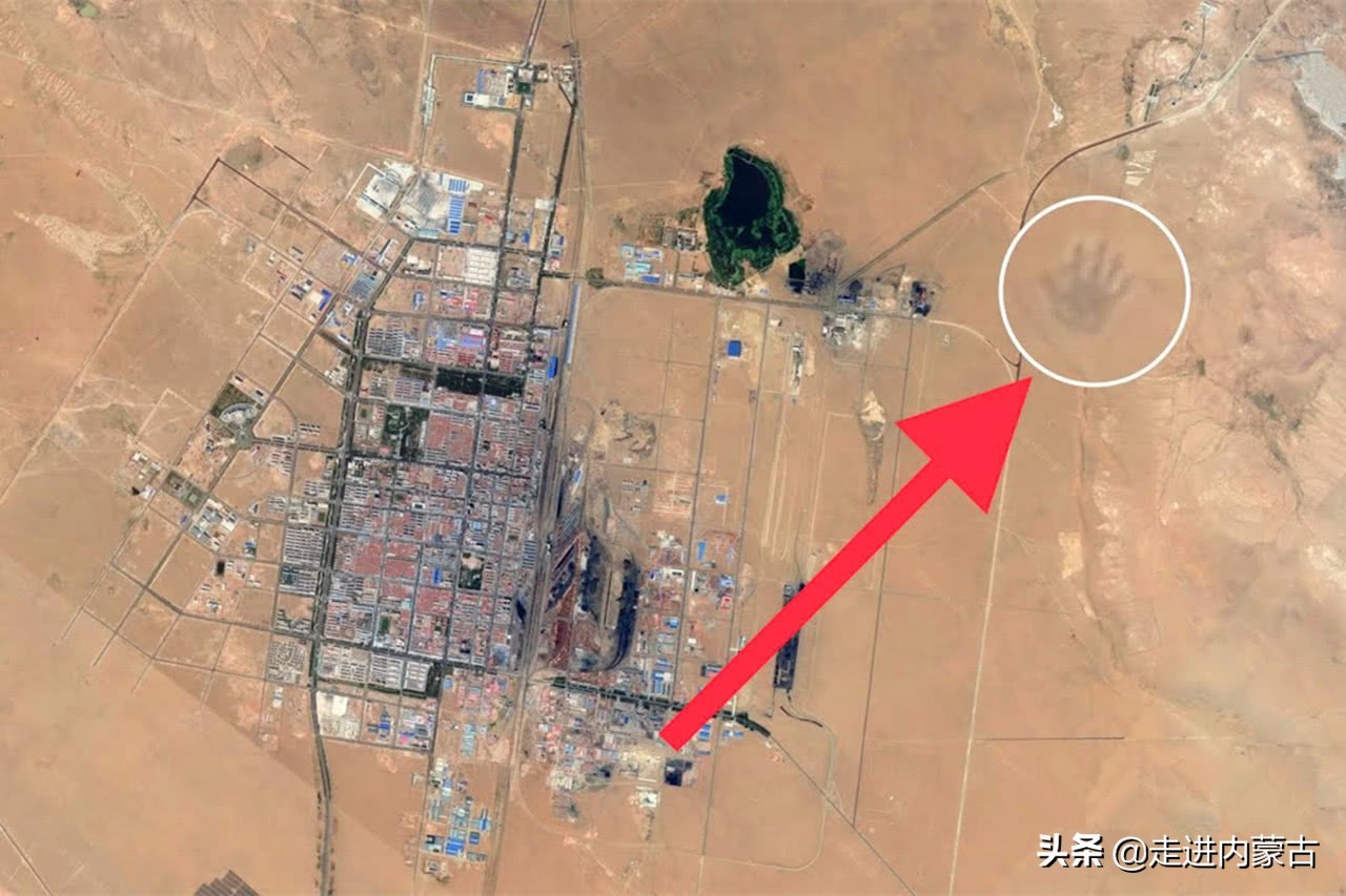 将卫星地图持续放大,竟然在内蒙古地界发现一个巨大的手掌印