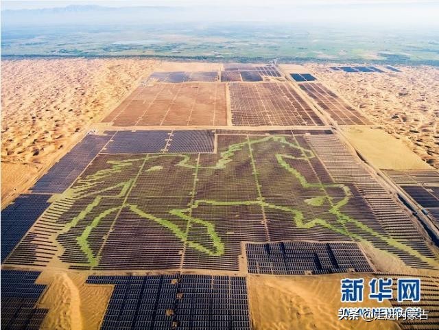 库布其沙漠腹地的巨型“骏马”,由196320块光伏板拼成。