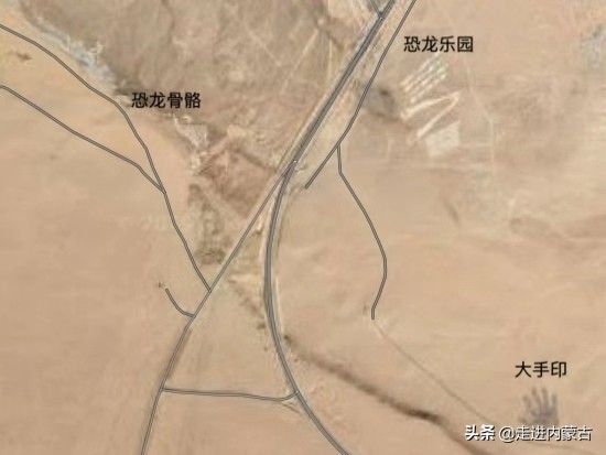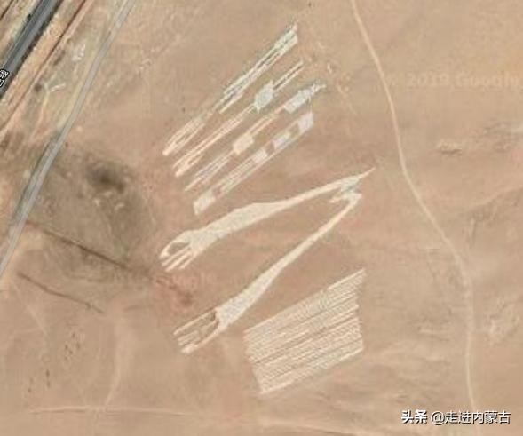 更远处还有两个恐龙化石的图案,这些都可以通过卫星地图观察到,如果事先不知道,真的可能会以为发现了新大陆,激动半天。