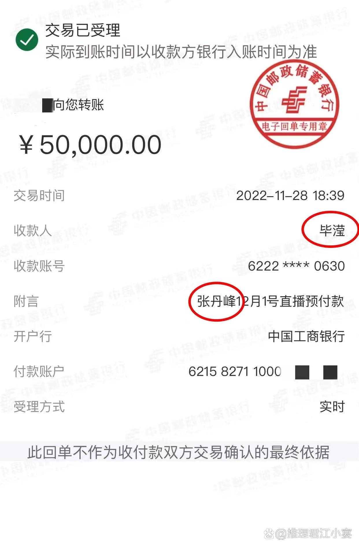 张丹峰直播的预付款是打到毕滢的账户上,说明张丹峰的经济大权是毕滢在掌控,并不是其老婆洪欣。看来过去张丹峰还表示已经和毕滢不再是老板和经纪人的关系,看来都是假的,虚晃一枪,欺骗网友,让大家信以为真,私底下还是让毕滢担任自己的经纪人,如此甩不开,已经不言而喻,他们可能就是暗地里的“夫妻”。