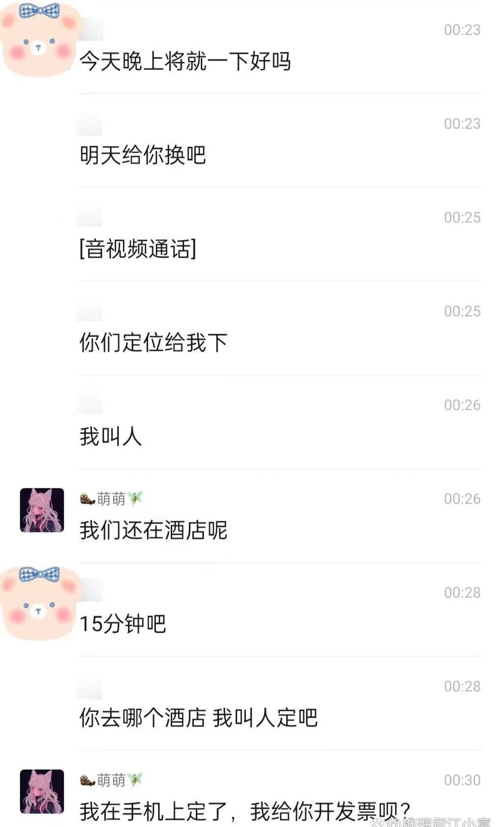 此外还透露了一些毕滢预订酒店不满意的聊天记录,主办方给他们预订的酒店不满意,要求重新预订,在主办方表示退酒店不方便后直接自己订了有套房的酒店。而且爆料人还称张丹峰原定直播是八个小时,但实际上才直播了四个小时就不想再继续了,很没有契约精神。