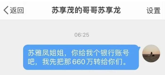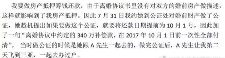 但由于苏享茂手头没有那么多现金,所以双方协商好先赔偿600万,剩下的赔偿款分期付清,随后还将三亚的一套房产过户到了女方的名下。