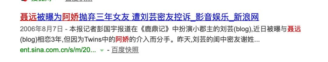 2006年,阿娇首度被锤插足聂远和刘芸的恋情。