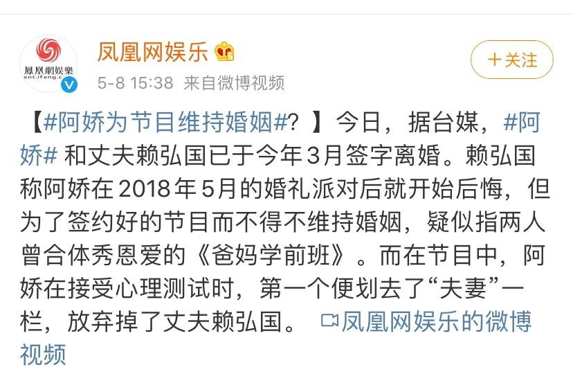 小S一语成谶,倘若台媒报道属实,阿娇在节目中的表现也恰好佐证了她为了签约好的节目不得不维持婚姻的行为。