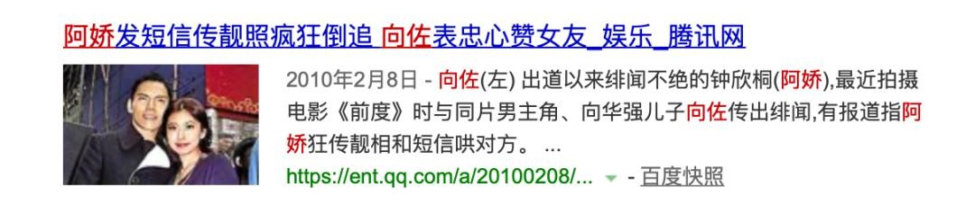 2010年,阿娇和向佐因为拍摄电影《前度》相识,有新闻报道二人假戏真做,阿娇数次发暧昧信息给当时已有女友的向佐⬇️