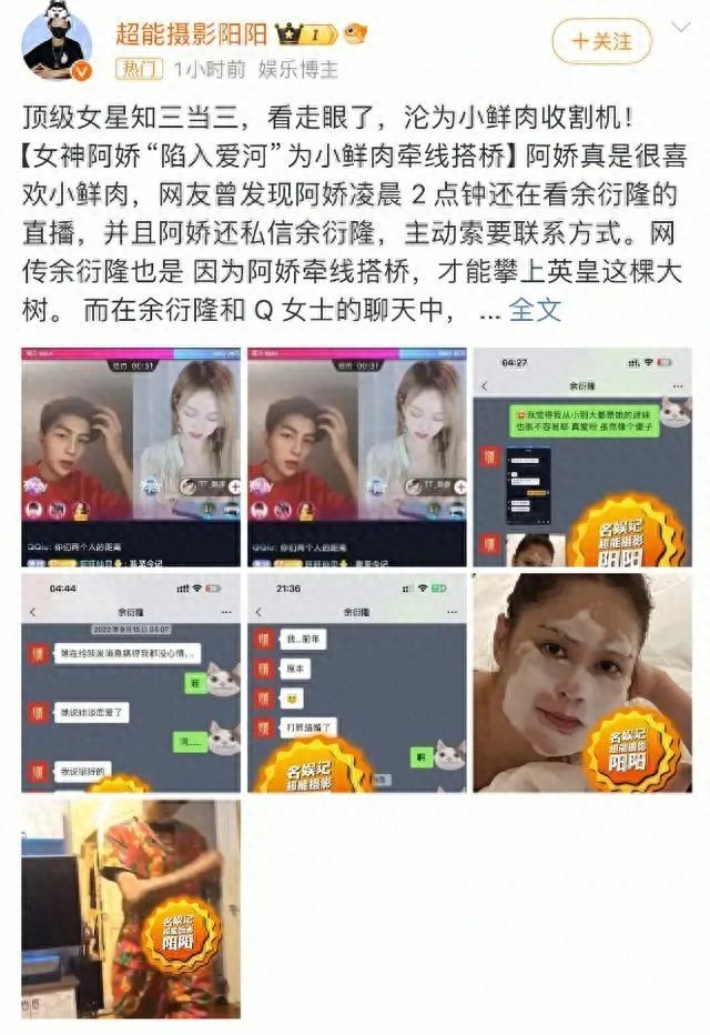 有博主爆料Twins成员阿娇在其婚姻期间,打赏涉嫌诈骗的00年鲜肉男演员余衍隆。更炸裂的是在明知对方有女友的情况下,还前往对方与女友的住所玩乐,疑似介入他人感情。