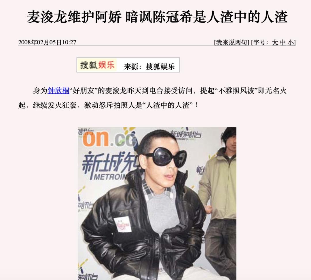谁能想到麦浚龙在前线为阿娇遮风避雨,阿娇竟在上节目采访中坦诚自己最爱的依旧是陈冠希,因为爱他,所以不后悔拍那些照片。