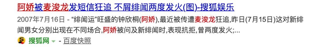 2007年初,麦浚龙被传追求阿娇,不过当时的阿娇并不“领情”,每每被问起和麦浚龙的恋情总会黑脸应对。