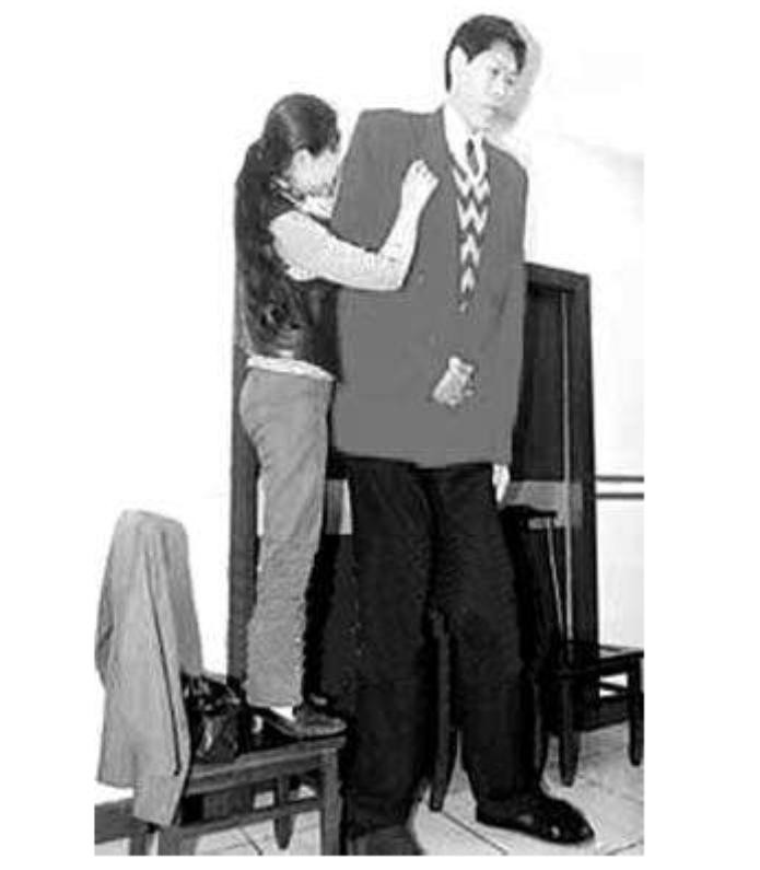 但是身高足以打破吉尼斯世界纪录的他,妻子却只有一米六五。