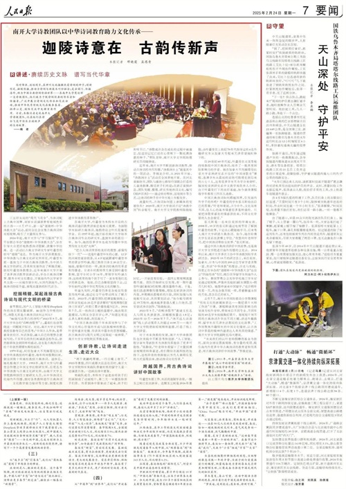 结对帮扶、送培到乡,在神州大地播撒热爱诗词的种子;创新形式、融媒传播,推动古诗词与新技术巧妙融合;走出国门、传播海外,助力中国古典诗词传诵世界……在南开大学有这样一支诗教团队,他们致力于做诗词经典的传承者和传播者,广泛开展古诗词文化传承和交流活动,推动中华优秀传统文化在服务基层、润泽心灵、国际交流中发挥重要作用。日前,人民日报记者走近南开大学诗教团队,记录他们在诗令飞花中传承古韵新声的生动故事。