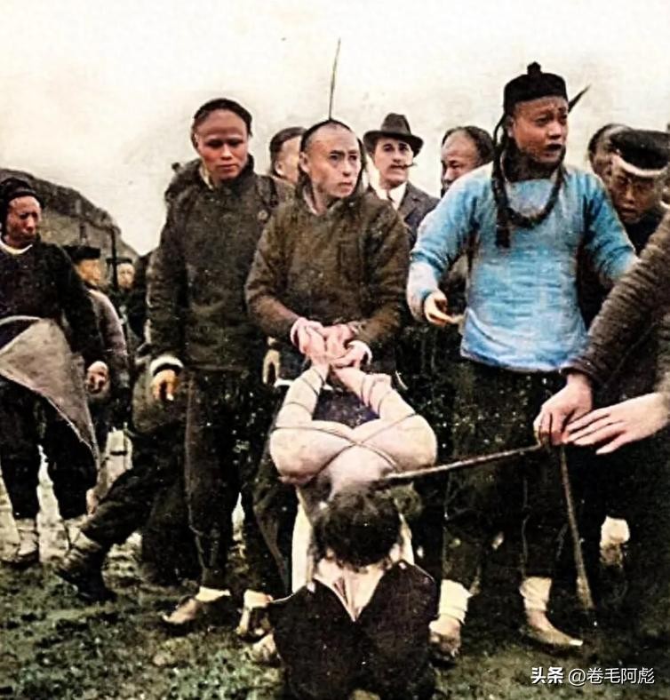 清朝刑场老照片:浸猪笼的女子一脸绝望,犯人像狗一样被牵着