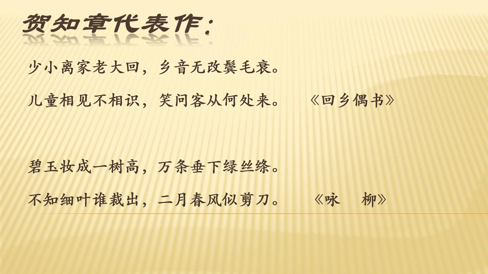历史文人模板:贺知章,字季真,唐代诗人。少时以诗文知名,30岁时考中状元,也是浙江地区第一位状元,其诗文以绝句见长,其写景、抒怀之作风格独特,清新潇洒。