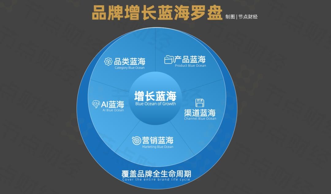 提炼中心思想后,由他们所体现的增长蓝海又可以归因为品类蓝海、产品蓝海、渠道蓝海、营销蓝海、AI蓝海。