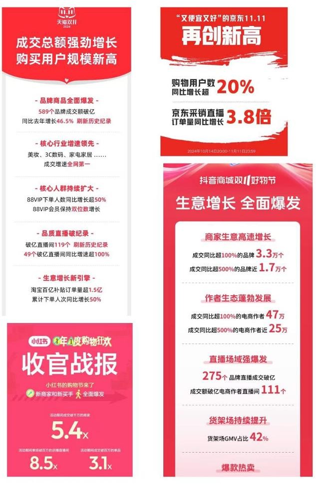 贝恩咨询发布的双十一研究报告显示,2022-2023年双十一成交额总量增速放缓,几乎进入停滞状态,但直播等以内容为主导的“新范式”释放出巨大带货的潜力。