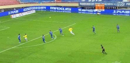 江苏苏宁与上海绿地申花比赛时,苏宁在中超发起长传球而桑蒂尼虽然被防守队员卡住了前方的身位,但是他还是精准判断到了球的落点,一个泰山压顶高高跃起甩头攻门。