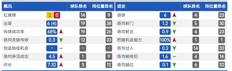 在这十场比赛中桑蒂尼传球成功率为68%;场均争顶成功为4.5;场均射门为1.2;把握机会能力为100%,排在球队第一名;场均被侵犯为1.6。这说明了桑蒂尼在终结能力和头球能力方面是非常之出色的,而由于他的威胁性也是非常之大,所以场均被侵犯1.6,排在球队第四名。一定程度上随着桑蒂尼的加盟后,埃德尔和特谢拉的进攻压力得到分担。