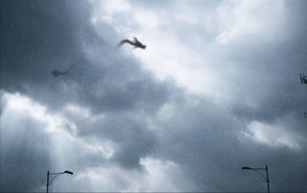 而且,如果真的是小鸟的话,强大的龙卷风一定会将这三只小鸟卷进去的,怎么可能还会让它们匀速飞行呢?