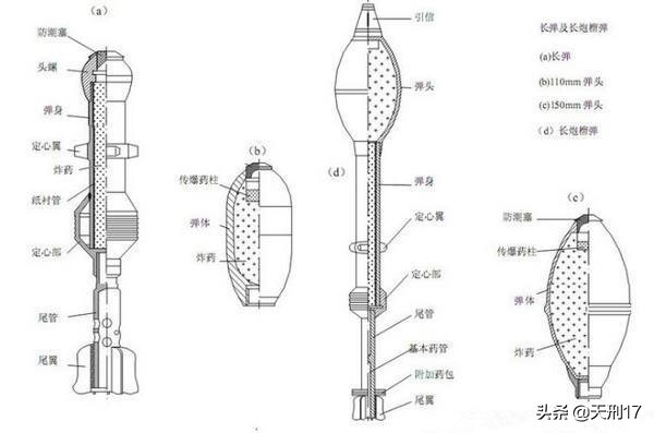 上面这张图是60毫米、82毫米迫击炮长弹。它有普通迫击炮弹一样的尾管,但是战斗部拉长,变成了一根装填炸药的钢管,其实这相当于是用迫击炮发射的爆破筒。