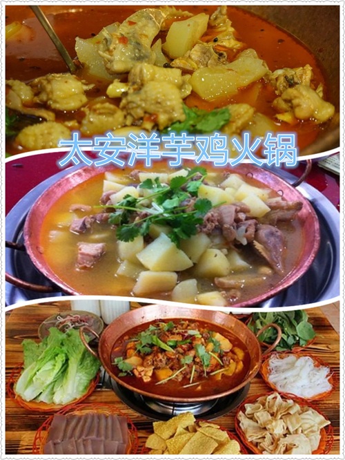 太安洋芋鸡火锅是丽江有名的地方特色美食,太安洋芋鸡就是把土豆和鸡肉一起炖煮的美食。用的是丽江本地太安的洋芋,太安是丽江的一个小镇,农作物以土豆为主,因为那里的土豆比其他地方的淀粉含量高,自然更好吃。这种土豆口感松软,放在本地嫩鸡做成的火锅中的确好吃。丽江象山市场附近有一家十年以上的老店,店名就叫太安洋芋鸡,导航就可以找到。