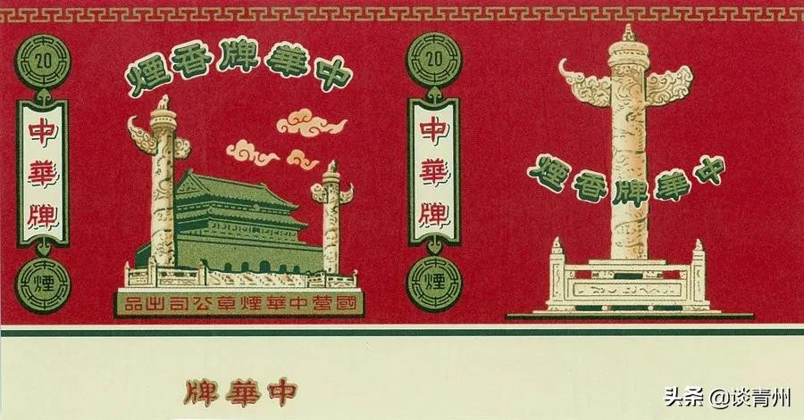 1952年2月1日,“中华”烟公司首次注册中华牌卷烟,是中华牌卷烟正式注册的第一个商标。商标为有云彩的双华表天安门图案,早期中华烟商标华表和天安门城楼图案均为徒手画成,与实物有较大差异,并略显矮胖,成为那个时代鲜明的特色。
