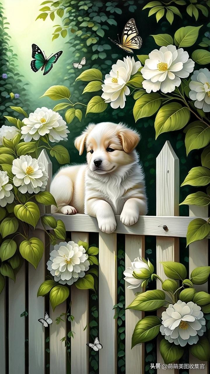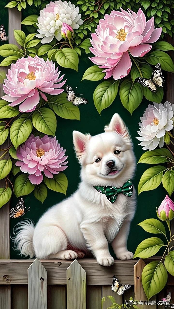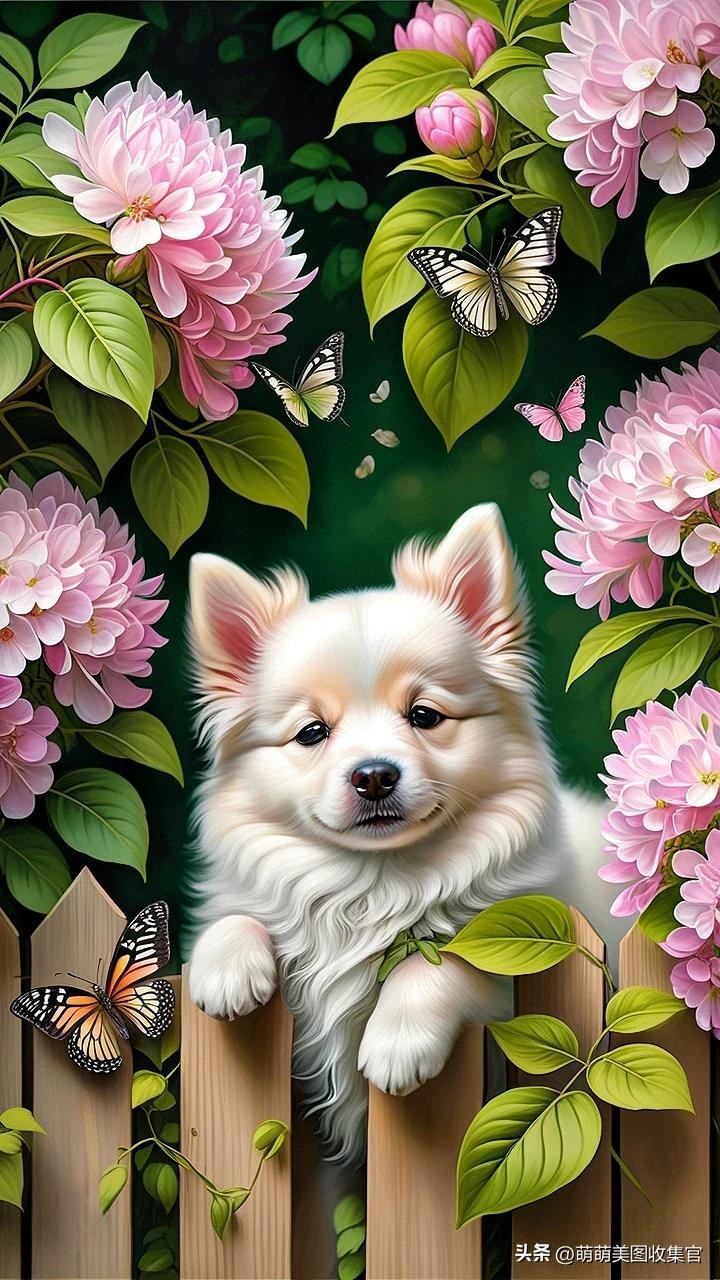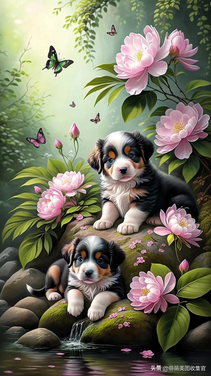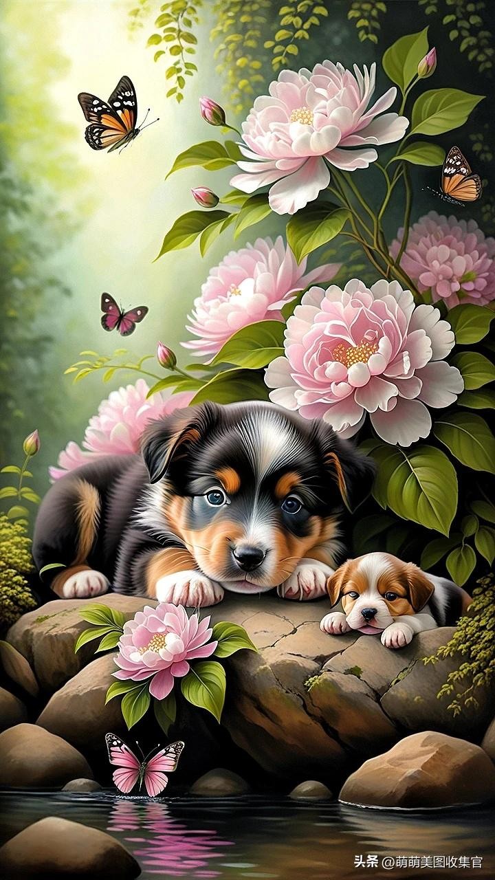 这些可爱的狗狗在花影间休息的情景,宛如一幅美丽的画卷,自在温馨,令人不自觉内心一片柔软,惊叹于一切都是如此的和谐与美好。