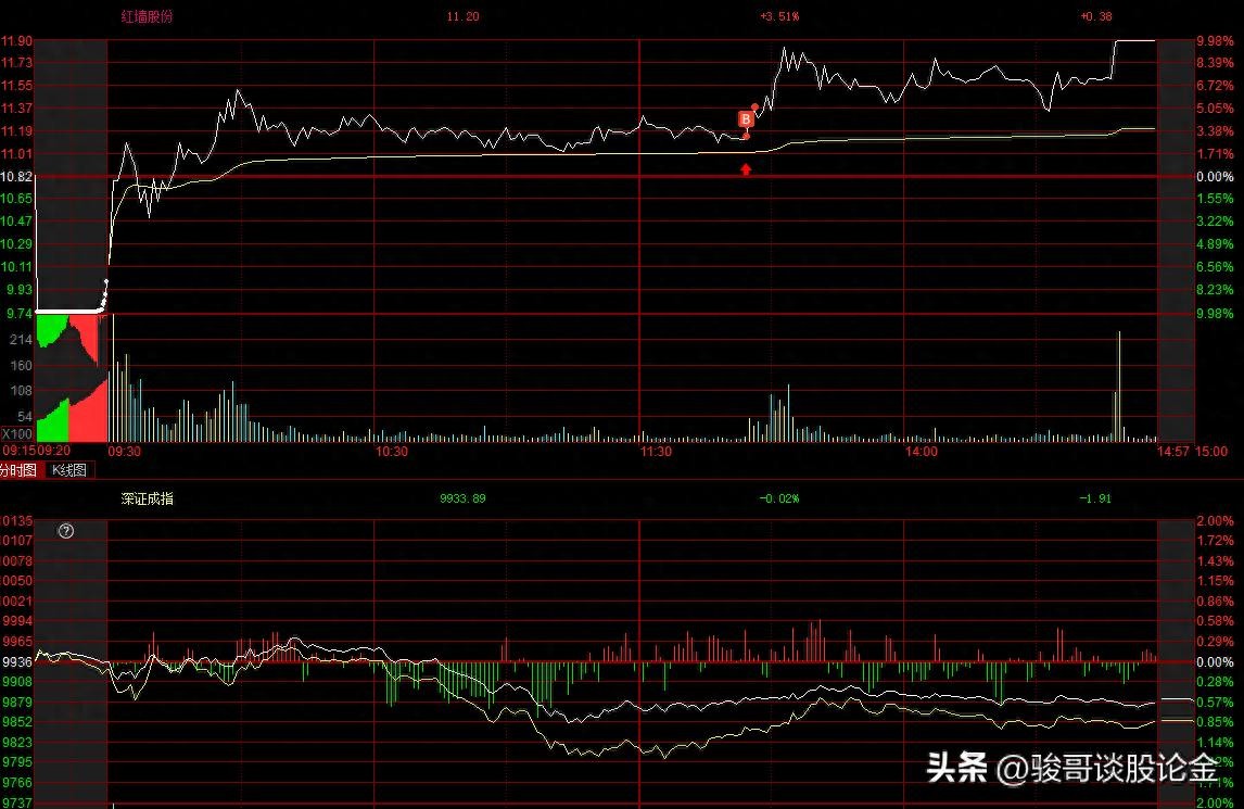 第二天,他平开高走,看上去有封板的趋势,可惜差一口气,在9个点的时候就开始回调,我在他第二次冲高无力的时候出货。收获12个点。