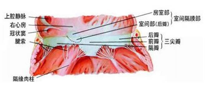 三尖瓣隔瓣:三尖瓣分为前瓣,后瓣和隔瓣,组成Koch三角的即为隔瓣。