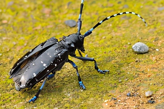 而世界最小的北美侏儒微天牛体长才0.23厘米,两者间的差距,就好比我们和车厘子,难以想象差距这样大的两个虫子曾经居然是一家人。不过因为天牛种类繁多,也造就了一批稀有的天牛品种,一些爱好昆虫的人们,秉持着物以稀为贵的道理,把这些不起眼的小虫子的身价,突然抬至几十万倍,比如曾卖到58.7万元人民币的鹿角天牛,就是一种十分罕见的天牛品种。