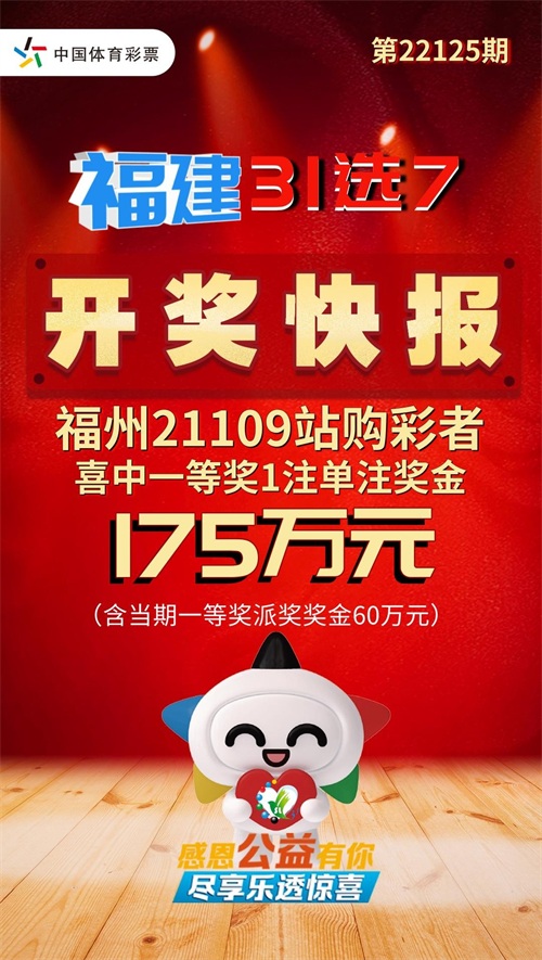 祝贺福州21109站喜中31选7一等奖1注单注奖金175万元!