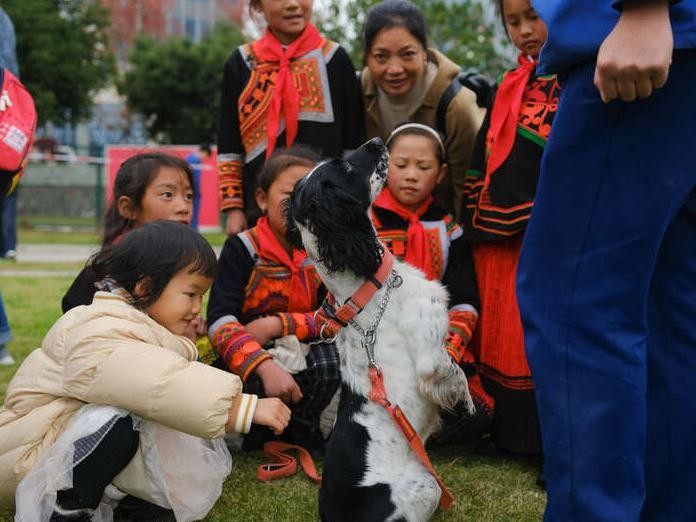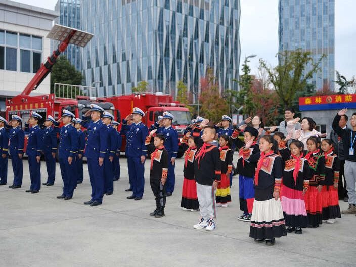 在活动中,大凉山的孩子们与消防员互致敬礼,表达对这些平凡岗位上英勇无畏的工作人员的敬意。随后,他们共同参与了升国旗仪式,感受到了团结一心、奋发向前的精神风貌。而在参观搜救犬训练的环节中,孩子们兴奋地近距离接触搜救犬,亲眼见证了这些可爱伙伴们的训练过程。