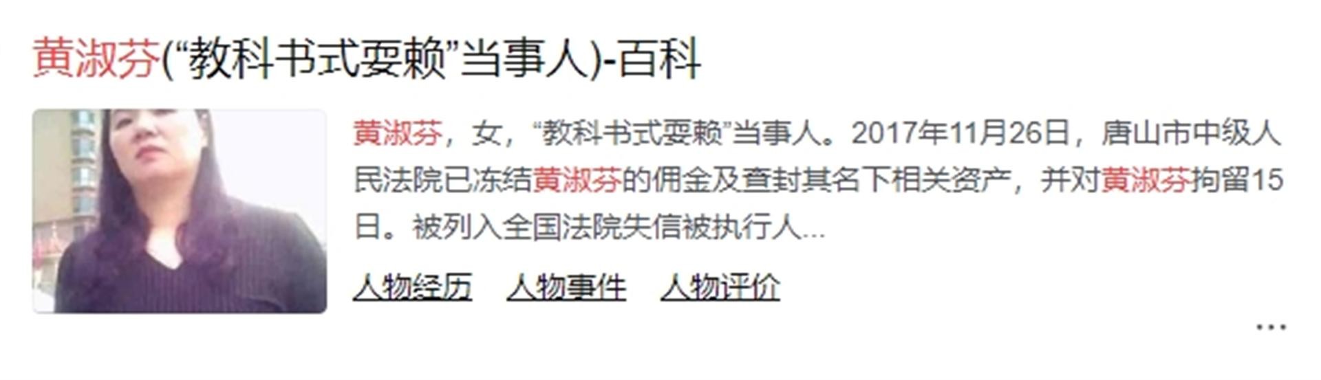面对这种无赖,赵香斌之子赵勇向法院申请了强制执行。唐山市中级人民法院立刻冻结黄淑芬的佣金及查封其名下相关资产,由于其“有履行能力而拒不履行生效法律文书确定义务”,被列入全国法院失信被执行人名单,同时,并对黄淑芬拘留15日。