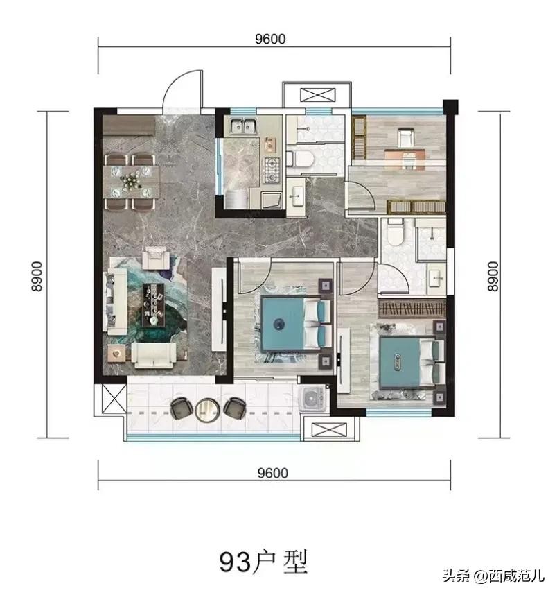 再加上三开间朝南、约9.6米面宽,并且实现了双卫设计,这在市场上是极其难得的。