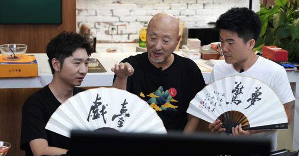 许多观众冲进直播间,陈佩斯卖的是一把折扇,每一个都有他的签名,再一个一个盖章。