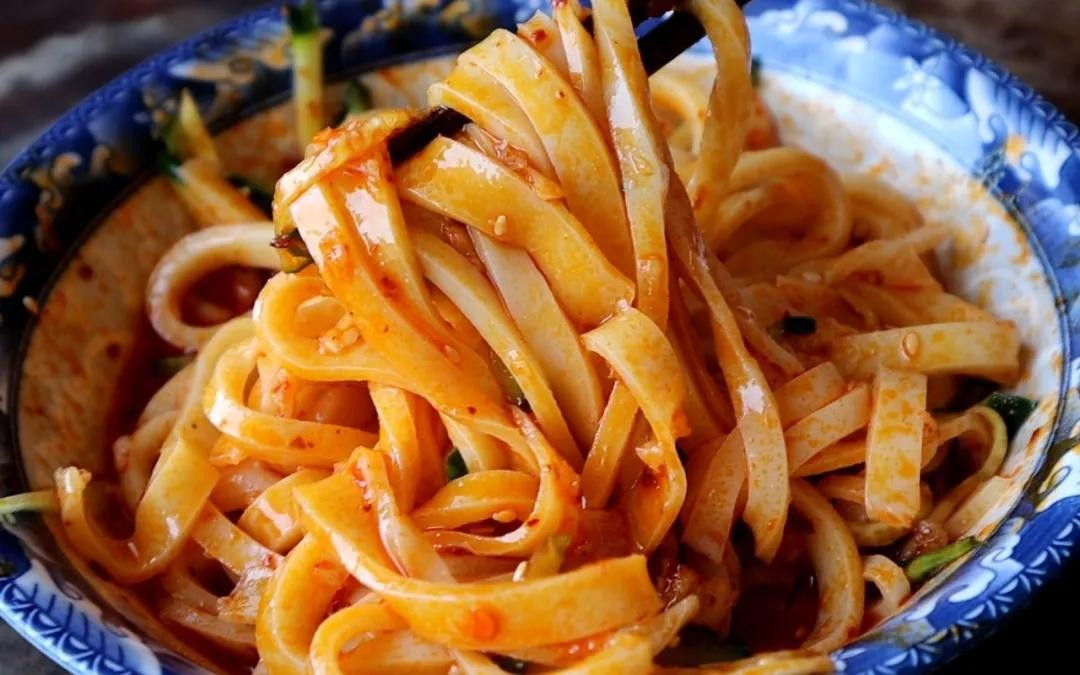 油泼辣子biangbiang面:是陕西关中特色传统风味面食,以手工擀制的宽面片制作而成。面条口感劲道,油泼辣子香醇不油,臊子酸辣爽口。