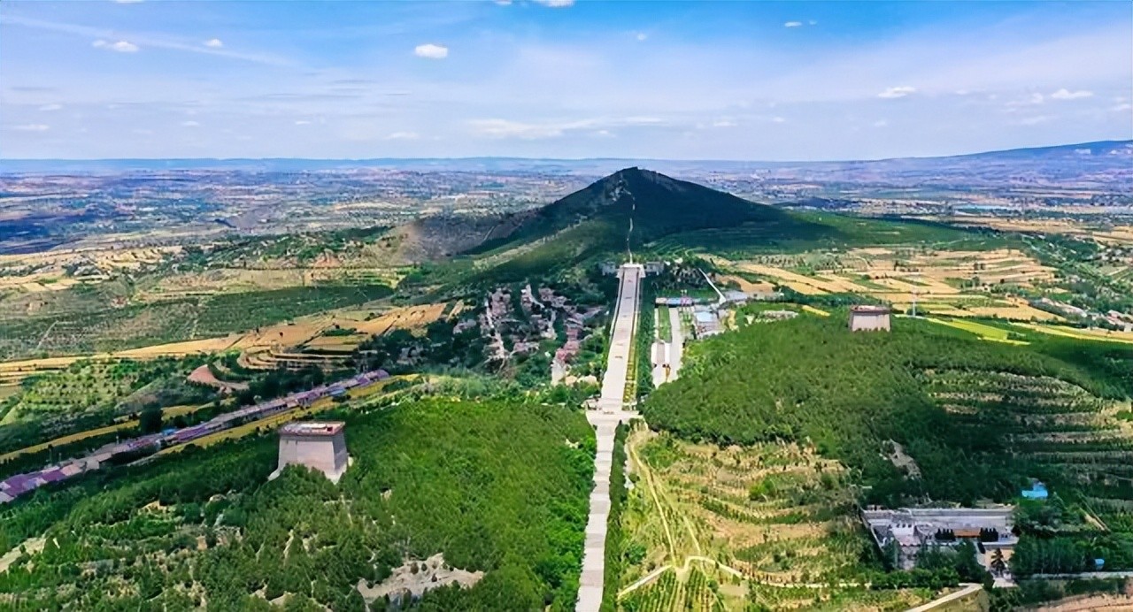 乾陵:位于陕西咸阳市乾县城北6公里的梁山上,修建于公元684年。乾陵陵区仿京师长安城建制,气势雄伟壮观,是中国乃至世界上独一无二的一座两朝帝王、一对夫妻皇帝合葬陵。里面埋葬着唐王朝第三位皇帝高宗李治和中国历史上唯一的女皇帝武则天。