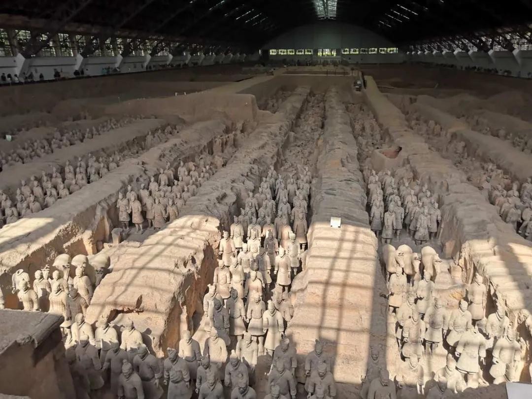 秦始皇兵马俑博物馆:秦始皇兵马俑博物馆位于西安市临潼区秦陵镇,国家5A级旅游景区。距西安37.5公里;和丽山园合称秦始皇帝陵博物院。兵马俑是秦始皇的从葬坑,被誉为“世界第八奇迹”,是“世界人类文化遗产“。景区内共有三个比较大的俑坑,比较珍稀和知名的单个兵马俑都在坑外独立展示。