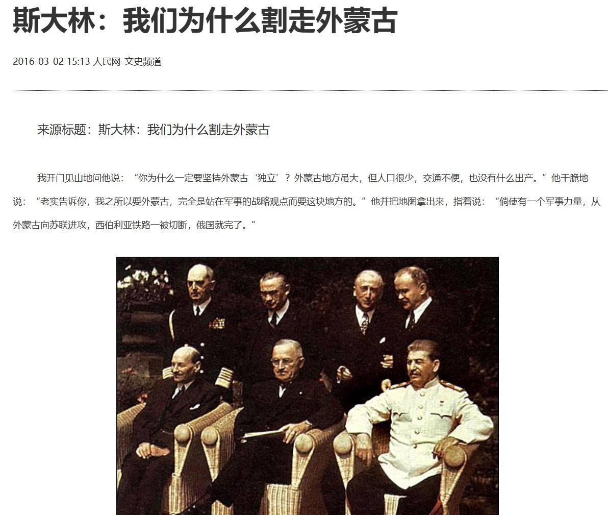 除了直接侵吞,苏联时期还策动了外蒙古的独立。外蒙古的面积在156万平方公里左右,于1945年正式独立,当时也得到了民国政府的承认。