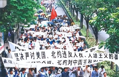 美国好像对中国政府及人民的愤怒视而不见,就只是无关痛痒的表示,这是他们工作人员的一次失误造成的,他们原本想炸的是同一条街道上的南联盟政府部门,结果误炸了中国大使馆。