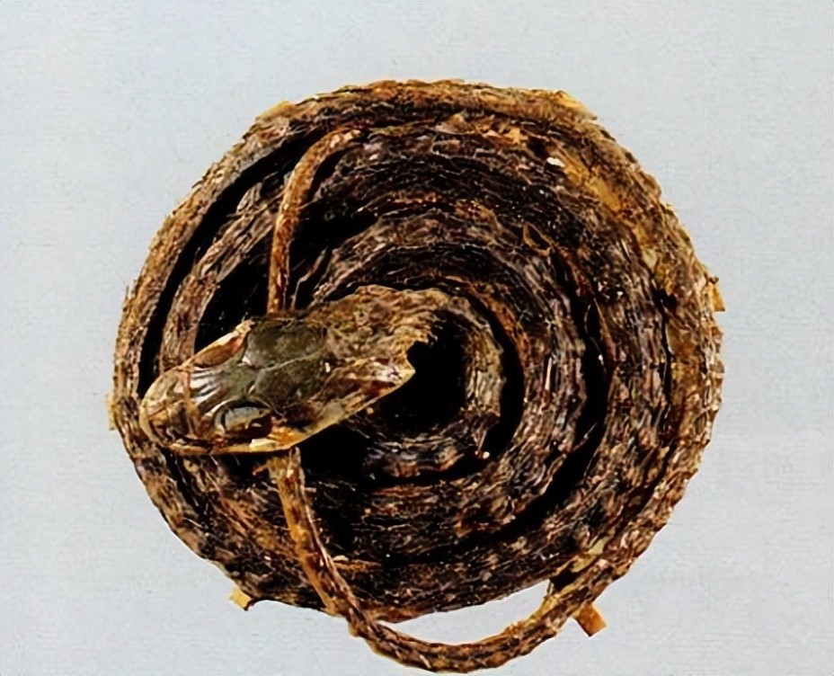 金钱白花蛇为眼镜蛇科动物银环蛇Bungarus multicinctus Blyth的幼蛇干燥体。夏、秋二季捕捉,剖开腹部,除去内脏,擦净血迹,用乙醇浸泡处理后,盘成圆形,用竹签固定,干燥。
