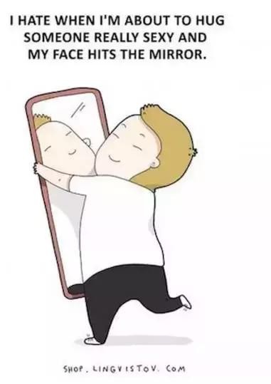 ▲特别讨厌的是,每当我想拥抱那个性感的家伙,我的脸就会碰到镜子。