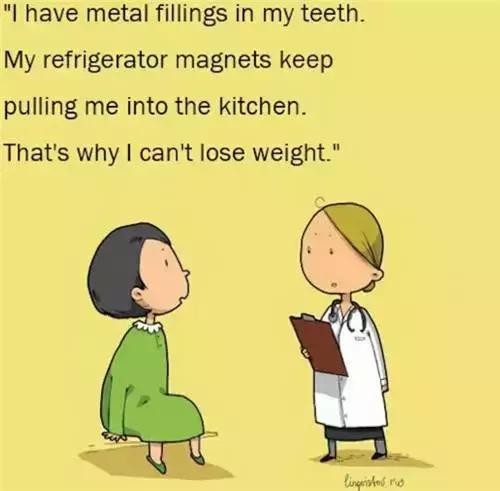 ▲我的牙齿里有金属填充物,电冰箱磁贴不停地把我吸进厨房,